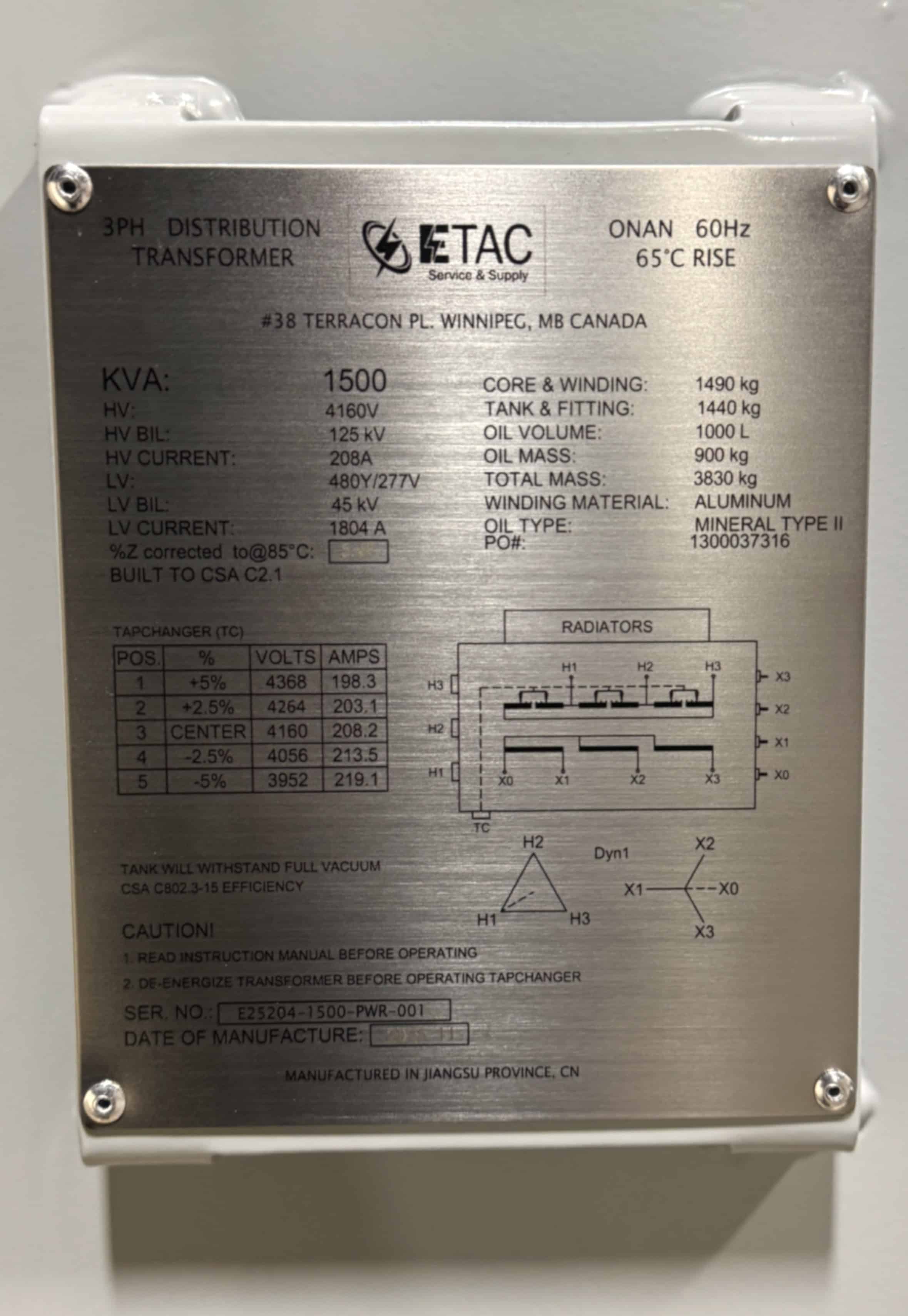 1.5 MVA Substation Transformer